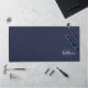 features personalised name in white script font style and monogram in light navy blue serif font style as background, on navy blue background.