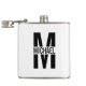 featuring personalised monogram in black bold modern sans serif font style with box of name in the middle of monogram.