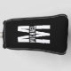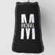 featuring personalised monogram in white bold modern sans serif font style with box of name in the middle of monogram on black background.