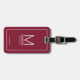 This luggage tag features personalised groomsman's monogram and name with title and wedding date in white modern sans serif font style on burgundy red background.