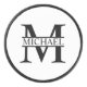 featuring personalised black monogram in classic serif font style with box of name in the middle of monogram on white background.