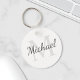 features personalised name in grey script font style and monogram in light grey serif font style as background, on white background.