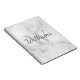 features personalised name in grey script font style and monogram in light grey serif font style as background, on white marble look background.