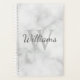 features personalised name in grey script font style and monogram in light grey serif font style as background, on white marble look background.