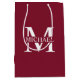 featuring personalised white monogram in classic serif font style with box of name in the middle of monogram on burgundy red background.