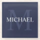 Personalised Monogram and Name Navy Blue Glass Coaster