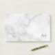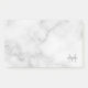 features personalised name in grey and monogram in light grey as background, in classic serif font style, on white marble background.