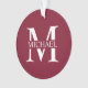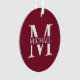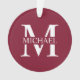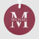 featuring personalised white monogram in classic serif font style with box of name in the middle of monogram on burgundy red background.