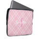 Personalised Monogram and Name Pink Plaid Gingham Laptop Sleeve