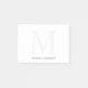 features personalised name in grey and monogram in light grey as background, in classic serif font style,