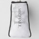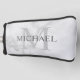 features personalised name in grey and monogram in light grey as background, in classic serif font style,