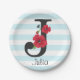 Personalised monogram editable J text red flower f Paper Plate
