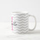 Personalised monogram grey chevron pattern mug. Cute monogrammed coffee mug design with trendy grey zig zag stripes. Cute typography Birthday or wedding favour gift idea for men, women, friends and family. Stylish zigzag design with elegant script typography. Custom colour for name initial letter. ie neon pink. Unique coffeemugs also available as large oversized cups and big to go travel mugs