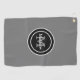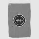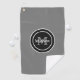 Grey background with black white circle centred on towel with last name initial in grey and first name in white