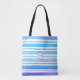 This trendy chic personalised nautical sea blue stripey monogram tote bag will make a great accessory to any shopping trip. Featuring a beautiful mix of watercolor blues with a deep blue and white circular monogram. The monogram initials can be customised to the colour of your choice, making it a perfect treat for yourself or as a special gift to a friend or family member.