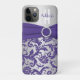 Personalised Monogram Purple and Silver Damask Case-Mate iPhone Case