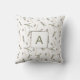 Personalised Monogram Rustic Botanical Christmas Throw Pillow. An all-over seamless pattern of pinecones, branches, and candles that can be scaled up or down. Colours in green, brown, and tan on a white background. Personalise the template with your monogram initial. © Kimbellished, LLC