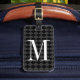 Personalised monogram scallop pattern travel luggage tag. Chic Initialled design with art deco fish scale pattern. Scalloped print with big name letter. Stylish gift for travelling men and women. Black and white colour or customise. Luxurious typography design. Luxury style baggage label for luxe bags and suitcases.