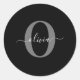 Personalised Monogram Script Name Black White Grey Classic Round Sticker