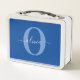 Personalised Monogram Script Name Blue White Metal Lunch Box
