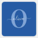 Personalised Monogram Script Name Blue White Square Sticker