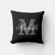 Personalised monogram throw pillow | Black colour. Personalizable cushion monogrammed with name and initial letter. In stylish grey or custom background colour. Elegant script typography text design. Classy chic home decor for sofa couch or bed.