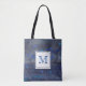 This monogrammed tote bag makes an excellent gift for anyone. The blue artwork is an original painting done in acrylic by Danielle Fernandez
