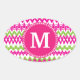Personalised Monogram Tribal Pattern Pink Chevron Oval Sticker