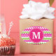 Personalised Custom Monogram Tribal Pattern Hot Pink Fuschia and Green Chevron Zigzag Pattern. Just add your own custom initial to make it your own. Bold Colours. Great Gifts for girls and teens and anyone who loves bright colourful patterns.