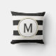 You can customise the large black monogram is in the centre. The initial is bordered by black, white and gold circles. Thick black and white stripes go across the background.