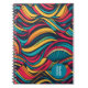 Make a Personalised Monogrammed Abstract Waves Pattern Note Book with abstract colourful pattern detail and monogram from Ricaso - add your own monogrammed text