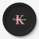 Personalised Monogrammed Black Modern Paper Plate
