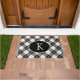 Personalised Monogrammed Black White Gold Plaid Doormat