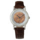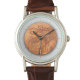 A beautiful centre for this elegant watch, adorned with a raw rustic wood piece with engraved flowers.