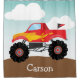 Red and yellow monster truck, construction theme boy's shower curtain. Personalise with your child's name!