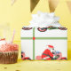 Creative motorcycle themed Christmas holiday gift wrap featuring Santa motorcyclist. Edit text to add name of your favourite biker.