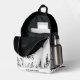 Personalised Mountains Adventure Awaits backpack with hand drawn sketch of mountains and tall trees for the adventurer and spirited traveller who loves to hike or go camping in the great outdoors.