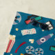 Personalised Movie Night Film Popcorn Pattern. Movie camera, filmstrips, movie theatre candy and drinks, 3d glasses. Fun family movie night pattern.