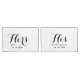 Mr. and Mrs. - His and Hers honeymooners pillowcase set in stylish black script text - shown on white linen background. Customise the newlywed couple's last name, first names, wedding date, or change the colours, add monogram initials, or special saying to create a truly unique personalised keepsake for the new bride and groom. Perfect novelty gift for bridal or couple's shower, bachelorette party, engagement, housewarming, hostess, or milestone anniversary. Click Customise It to change the fonts or add your own custom text.