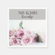 Elegant personalised Mr. and Mrs. napkin. This pretty napkin features black writing with a grey background and pink/ purple roses with a white background. You can personalise it with your surname, and even change the text colour and font style using the customise option. Perfect for a wedding or anniversary party!