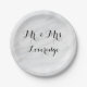 Personalised white and grey marble Mr. and Mrs. paper plate. This stylish plate features elegant black writing. You can personalise it with your surname, and even change the text colour and font style using the customise option. Perfect for a wedding, engagement or anniversary gift!