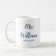 personalised mrs est your date, engagement gift for bride wedding, present for bride wedding gift, monogram last name newlywed modern, bachelorette party mrs newly engaged, bridal shower recently married mug, cute blue and white typography, bride mug fiancee birthday gift, custom personalise her calligraphy cup, just married trendy simple script
