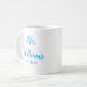 personalised mrs est your date, engagement gift for bride wedding, present for bride wedding gift, monogram last name newlywed modern, bachelorette party mrs newly engaged, bridal shower recently married mug, cute bright blue and white typography, bride mug fiancee birthday gift, custom personalise her calligraphy cup, just married trendy simple script