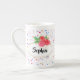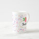 A wonderful Bone China mug with a painted rose bouquet and a handwriting name in a refined glitter gold fram on a sparkling background of coloured confetti and spangles is a great purchase for yourself or as a nice gift. The design is ready to personalise: press "Personalise this template" to editting the name. Alsow you can click "to customise further" to open up full editing options for make design to whatever you want it to represent: to arrange taxt, change a font and a font colour and also to add additional information, images or remove existing.