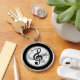 Personalised Music Keychain for Him or Her. 2 Sizes and Round or Square or choose the cheap music gift design, Button Style Keychain which are nice Music Party Favours. Black and White design with Treble Clef and Notes in Swirls against a white shaded background. For COLOR, Design, Occasion and Product CHANGES, Call Designer Linda: 239-949-9090 EST Monday - Friday 10AM to 6PM