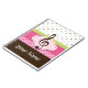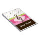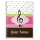 Cute polka dot Personalised Music Practice Notebook has treble clef logo with pink polka dots and stripes design. Add a custom name on the front to make a piano student or music lover stocking stuffer gift.