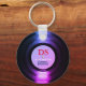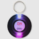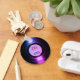 The image of a purple vinyl-record with custom name and initial, with the words 'let the music play'