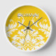 Vintage Modern Abstract Floral Mustard Yellow Black and White Damask White Dots Custom Wall Clock - Your Name - or change to read whatever you like. To change colour click customise then edit. Use the last tool on the drop down - the little colour box - click it to choose from the colours shown or enter your RGB Hex Code for a one of a kind designer clock!