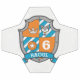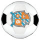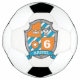 Encourage ball skills with this aqua teal blue orange graphic knights shield heraldry style boys personalised name and age fun football / soccer ball. Shield art with a wolf / dog's head, royal crown, personalised age and star crest design. Currently reads Raoul. © Unique art and design by Sarah Trett for www.mylittleeden.com