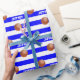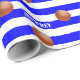 This wrapping paper is decorated with a pattern of repeating basketballs and blue and white stripes, and personalised with name. What a unique and special way to wrap gifts. Great gift wrap for Christmas, Father's Day, Birthday, Thank You to Coach - any occasion. Basketball players, coaches, and fans will love it! All Rights Reserved © 2014 Alan & Marcia Socolik.